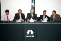 Na tarde da última segunda-feira, dia 28 de novembro, a Unimed Porto Alegre assinou convênio com o Instituto de Previdência do Estado do Rio Grande do Sul (IPE), para atendimento global na estrutura do Hospital Unimed, localizado no município de Guaíba. A solenidade de assinatura do contrato contou com as presenças do presidente do Conselho de Administração da Unimed Porto Alegre, Márcio Pizzato; do presidente do IPE/RS, Valter Morigi; do prefeito de Guaíba, Henrique Tavares; do chefe de Gabinete da Secretaria de Planejamento, Gestão e Participação Cidadã do Estado, Pedro Henrique Correia Filho; e do diretor técnico do Hospital Unimed, Mário Rossi.