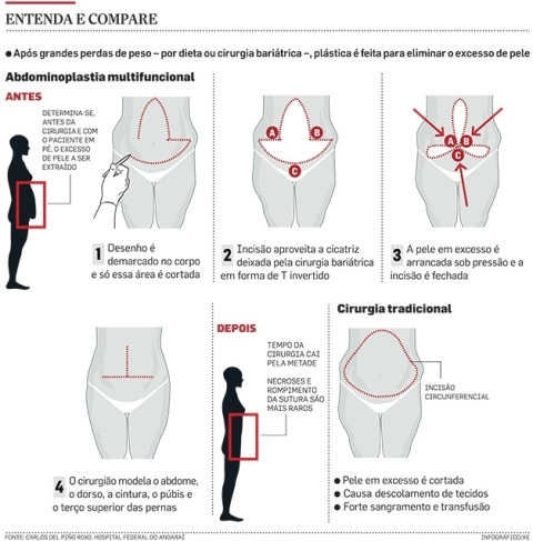 Esse tipo de cirurgia corrige um problema que surgiu com as operações bariátricas. Ao perder peso rapidamente, o ex-obeso sofre com o excesso de pele, que não “encolhe” no ritmo do emagrecimento. Na barriga, essa pele cai como se fosse um avental, cobre a púbis e alcança a coxa, em casos mais extremos.