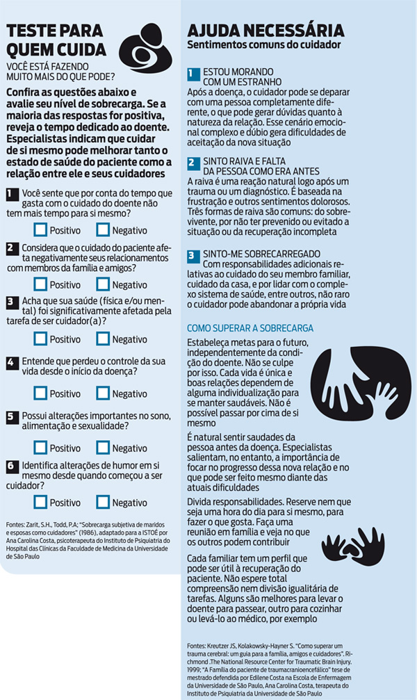 Ainda neste primeiro semestre, outro grupo semelhante será montado em Sergipe, indicado para cuidadores de vítimas de trauma cranioencefálico. Eles são obrigados a lidar com a raiva, a dor e as dificuldades de se adaptar a uma nova situação de um dia para outro. Um estudo da Escola de Enfermagem da Universidade de São Paulo mostrou que 34% desses indivíduos tinham sintomas depressivos. “É normal sentir raiva do que aconteceu. A aceitação é lenta”, diz a enfermeira Edilene Costa, especialista em pacientes com trauma cranioencefálico, autora do estudo e coordenadora do grupo a ser iniciado no Estado nordestino.