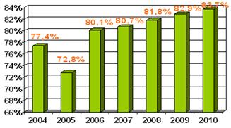 Mais de 83% das 257 mil crianças gaúchas atendidas pelo Programa Sesc Sorrindo para o Futuro registraram melhora ou mantiveram as boas condições de saúde bucal. A pesquisa, realizada ao longo de 2010 pelo Sesc/ Sistema Fecomércio-RS, avaliou dados de 53.859 crianças de 754 escolas de 133 municípios do Rio Grande do Sul. Atualmente, o Programa Sesc Sorrindo para o Futuro é desenvolvido em mais de 2,8 mil escolas de 389 cidades.
