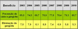 Obs: A proporção de crianças que iniciam o ano com gengivite tem reduzido desde 2008.