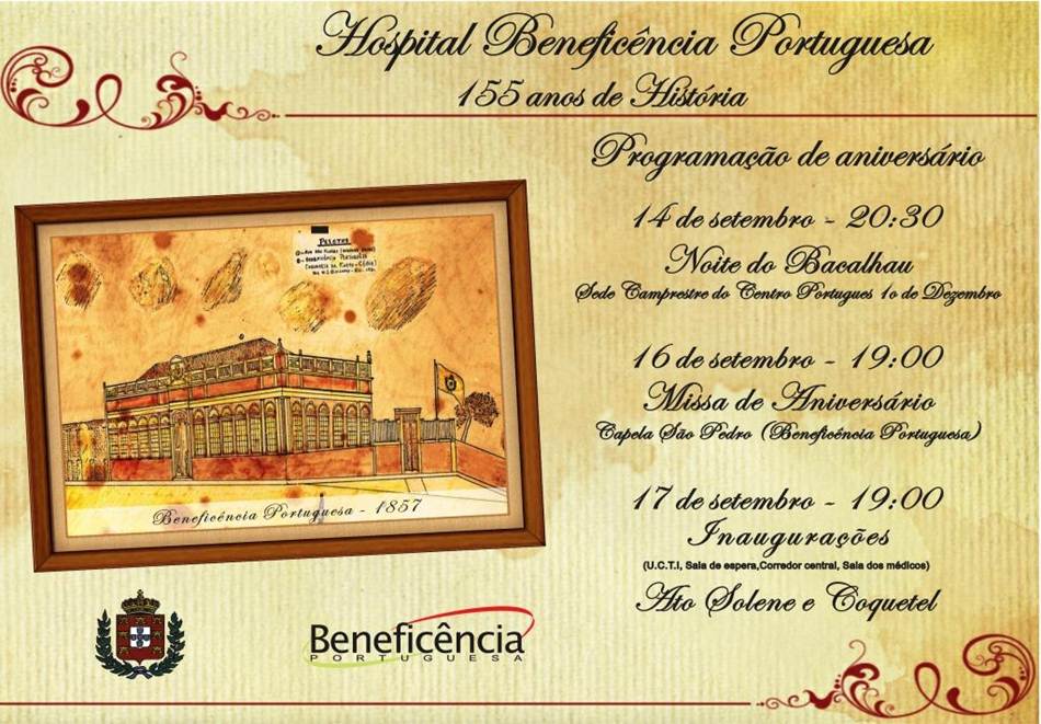 A Sociedade Portuguesa de Beneficência comemora no dia 16 de Setembro deste ano, 155 anos de atividades, criado para ser uma casa de assistência na área da saúde e no auxilio para a comunidade Lusitana.