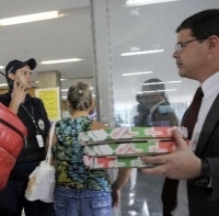 Representantes da Aliança de Controle do Tabagismo (ACT) e da Sociedade Brasileira de Oncologia Clínica distribuíram pizzas, na última sexta-feira (14), a funcionários do Ministério da Saúde em protesto contra a falta de regulamentação da chamada Lei Antifumo, que vai completar um ano no sábado (15).