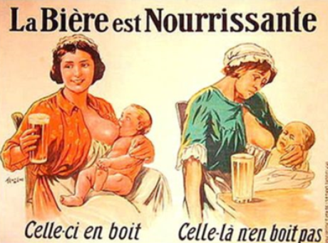 As recomendações “medicinais” da cerveja não paravam por aí. Uma das propagandas da Guinness, veiculada há menos de 100 anos, colocou um médico como protagonista recomendando o consumo da bebida. A Antarctica lançou anúncio em que um bebê segurava uma garrafa de cerveja e a oferecia para a mãe. Outro comercial, de uma marca desconhecida, mostrava uma mãe amamentando e como a cerveja a ajudava nessa etapa da vida. “A crença era de que a cerveja estimulava a produção de leite, pelo valor nutritivo e porque também relaxava a mãe, aumentando a produção do leite”, disse Veinert.