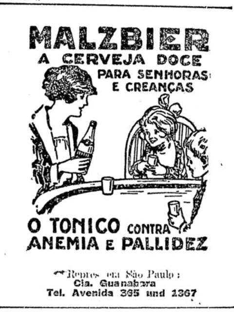 Um comercial da Rainier Beer veiculado há pouco mais de 100 anos, por exemplo, mostrava um adulto e uma criança brindando com um copo de cerveja em mãos e uma legenda que dava à bebida o posto de melhor tônico para as pessoas, imbatível a qualquer remédio. Anos mais tarde, a Malzbier, da Brahma, foi anunciada com uma propaganda que dizia: “a cerveja doce para senhoras e crianças, o tônico contra anemia e palidez”. Mas, como o consumo de álcool pode ser benéfico a crianças? Para a endocrinologista do Hospital Santa Cruz de São Paulo, Lilian Kanda Morimitsu, não havia clareza da química nos processos de fabricação dos alimentos e bebidas e, “provavelmente, se confundia as propriedades benéficas da levedura com a própria cerveja”.