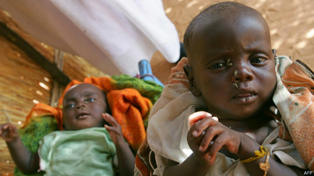 Irmãos atingidos por diarreia e desidratação aguardam ajuda no Sudão, em foto de 2004: segundo a OMS, a diarreia mata cerca de 760 mil crianças por ano