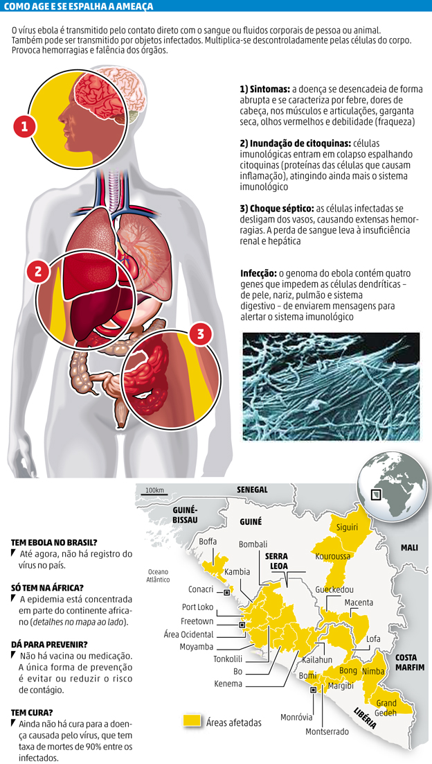 Segundo a última contagem da OMS, de 23 de setembro, na Guiné, onde o surto começou no ano passado, o Ebola infectou 1.074 pessoas, matando 648 delas.