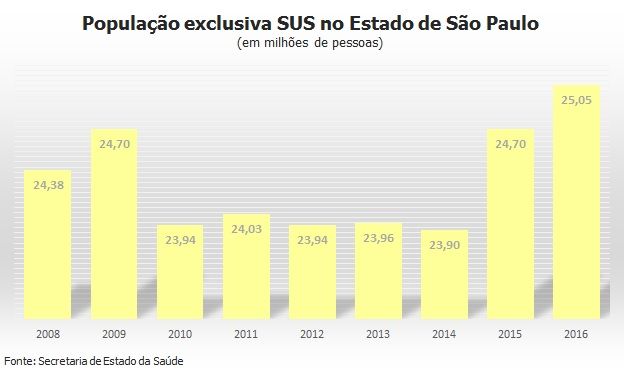 Antes de 2008, a estimativa de dependentes feita pela Secretaria de Estado da Saúde apontou sempre para um número próximo a 25 milhões de usuários exclusivos dos serviços públicos de saúde nos municípios paulistas.