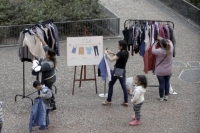 Cartaz orientava pessoas a retirarem peça que gostariam de dar a um amigo e depositar R$ 10 em uma urna. Valor será revertido para asilo