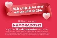 Pensando nos apaixonados que desejam não apenas dar um presente, mas promover o conhecimento para seus amores, o Senac-RS tem uma sugestão: que tal presentear com uma qualificação do Senac-RS? Entre 7 e 14 de junho, os interessados em qualquer curso da instituição poderão utilizar o cupom NAMORADOS12 em compras no site do Senac-RS, para ganhar 12% de desconto (não aplicável nos cursos EAD, Graduação e Ensino Médio).