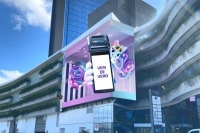 Utilizando o painel de LED com tecnologia tridimensional, a maquininha se projeta para fora da tela. A publicidade está sendo veiculada na instalação da fachada do Pontal Shopping, em Porto Alegre.