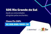 Estamos trabalhando para reestabelecer eventuais pontos de atendimento do Banco indisponíveis. Seguindo as orientações da Defesa Civil, solicitamos aos nossos clientes que evitem deslocamentos, utilizando formas de atendimento alternativas como aplicativo, telefone, internet banking e WhatsApp. Em parceria com o Governo do Estado, o Banrisul disponibiliza uma chave Pix para doações às comunidades atingidas pelas enchentes, utilizando o CNPJ 92.958.800/0001-38.