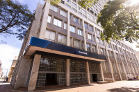 O Edifício-Sede do Banrisul, no Centro Histórico de Porto Alegre, conta com um sistema de elevadores de emergência