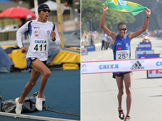 Solonei se prepara para o Troféu Brasil de Atletismo (à dir.) em 2011, quando ficou em quarto lugar, e ao lado aparece na chegada da 18º Maratona de SP, em que ficou em primeiro