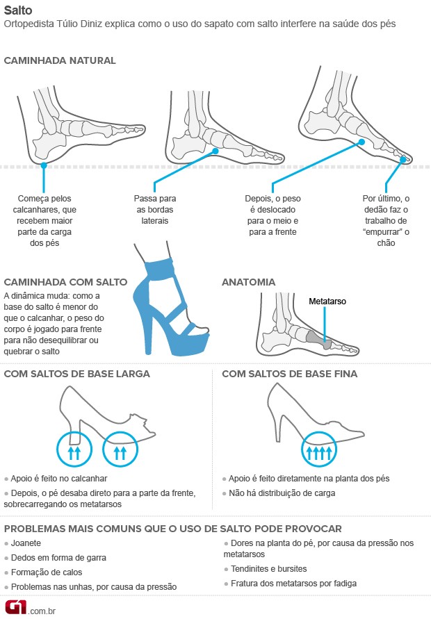 O uso do sapato alto com frequência joga os pés para a frente, encurta a musculatura da panturrilha e e espreme os dedos - por isso, é importante evitá-los, se possível, como alertou o ortopedista Mauro Dinato.