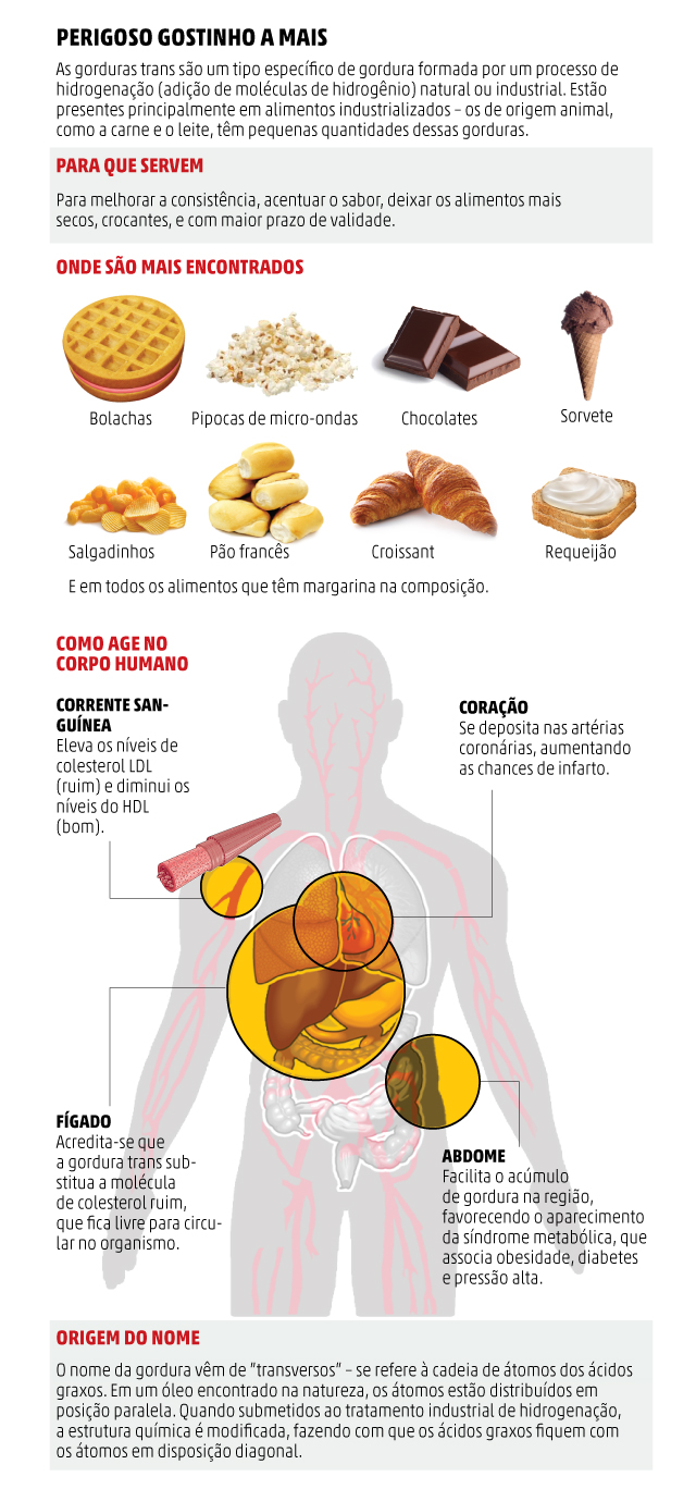 E quando o assunto é trans, não há níveis seguros para a ingestão, alerta a Organização Mundial da Saúde (OMS). A entidade propõe a eliminação total do consumo de gordura trans industrial — em 2013, a Administração de Alimentos e Drogas dos Estados Unidos (FDA) propôs a proibição em alimentos processados no país.