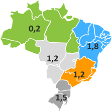 Segundo o estudo, que analisou 533 casos de beneficiários de planos de saúde com esclerose múltipla no ano de 2014, 73% das vítimas são mulheres e 27% homens. A Orizon identificou ainda que a cada 10.000 pessoas 1,3 desenvolve esclerose múltipla no Brasil. Na região Nordeste este índice sobe para 1,8, seguido pela região Sul (1,5), Sudeste e Centro-Oeste (1,2 cada) e a região Norte apresenta um valor bem inferior, 0,2.