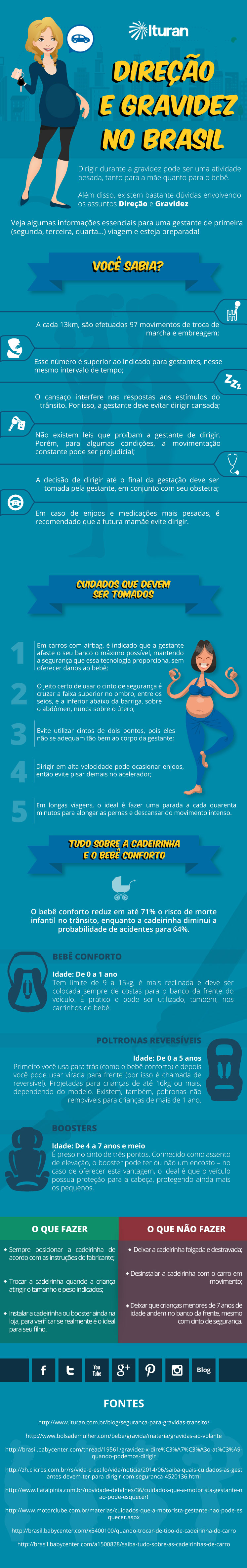 Pelo cuidado necessário durante a gestação e por todas as dúvidas, a Ituran Rastreadores preparou um infográfico com algumas curiosidades, dicas e precauções sobre dirigir grávida. Além disso, são apresentadas informações sobre a cadeirinha e o bebê conforto, itens obrigatórios que diminuem o risco de morte infantil no trânsito e a probabilidade de acidentes.