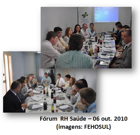 Entidades gaúchas contam agora com um Fórum permanente de discussão dos temas ligados aos Recursos Humanos em instituições de saúde. Em operação desde o último dia 06 de outubro, o Fórum RH Saúde é uma iniciativa da Federação dos Hospitais e Estabelecimentos de Saúde do Rio Grande do Sul (FEHOSUL) que busca integrar e compartilhar conhecimentos estratégicos sobre gestão de pessoas na atualidade. Participaram do primeiro encontro gerentes, coordenadores e demais envolvidos na área de Recursos Humanos de oito instituições de saúde da Capital.