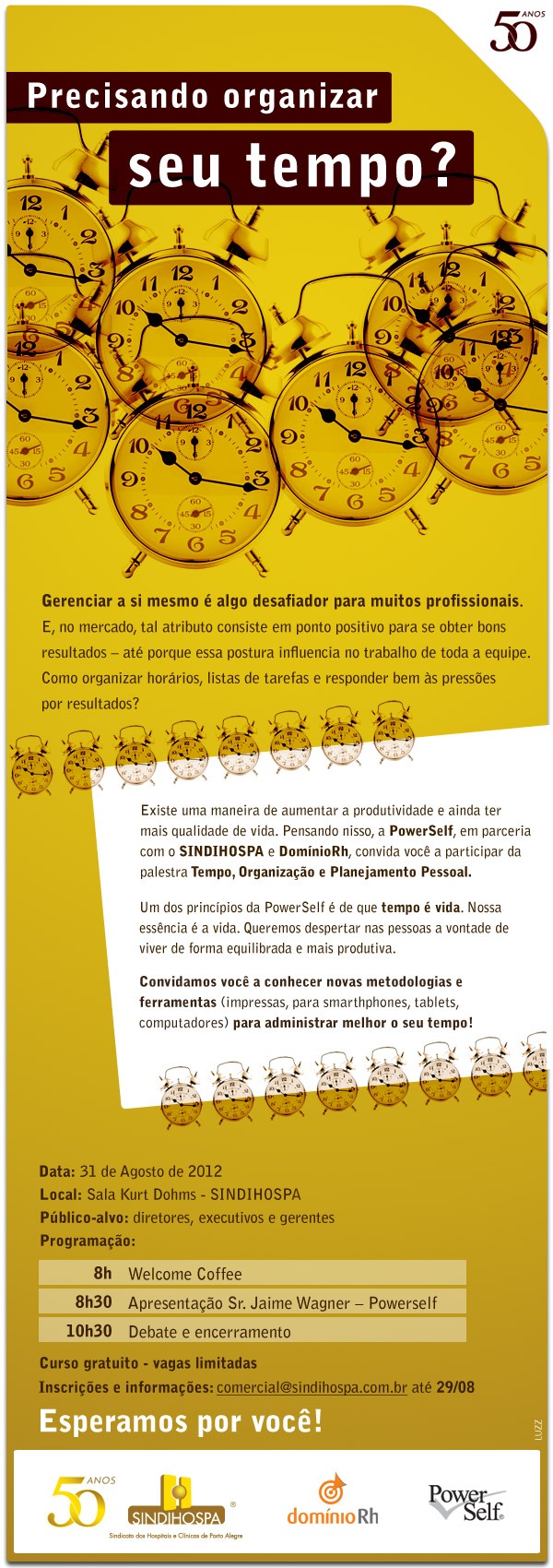 Palestra "Tempo, Organização e Planejamento Pessoal" irá ocorrer no próximo dia 31