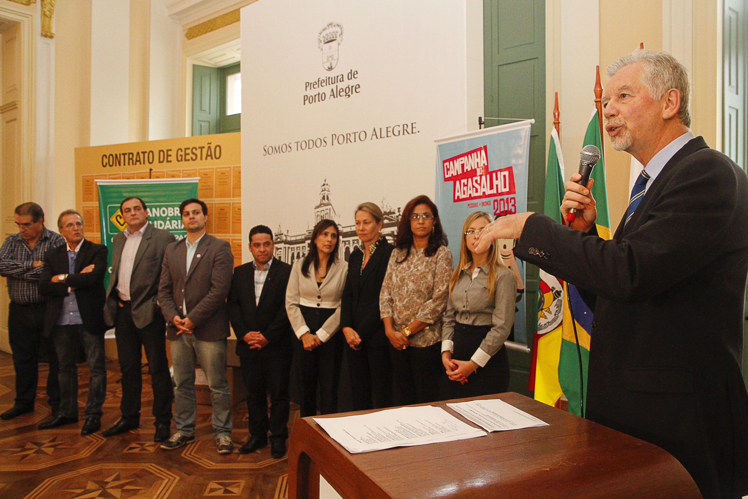 Na sequência, o prefeito de Porto Alegre, José Fortunati, lembrou que Porto Alegre é a segunda capital mais fria do país, apresentando um clima adverso à sobrevivência das pessoas mais necessitadas. Além disso, Fortunati reafirmou a posição destacada por Regina Becker, sinalizando que “a atuação em parceria com demais segmentos da sociedade é fundamental para o sucesso da campanha”.