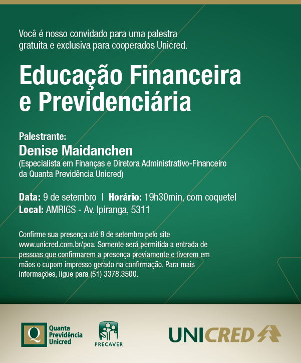 Evento com a Especialista em Finanças e Diretora Administrativo-Financeiro da Quanta Previdência Unicred, Denise Maidanchen