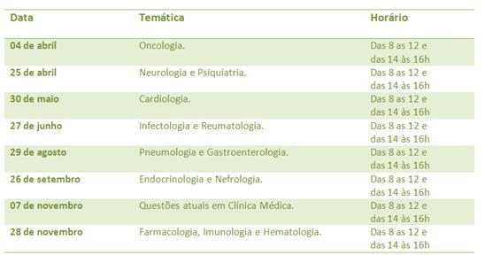 Confira o cronograma das aulas: