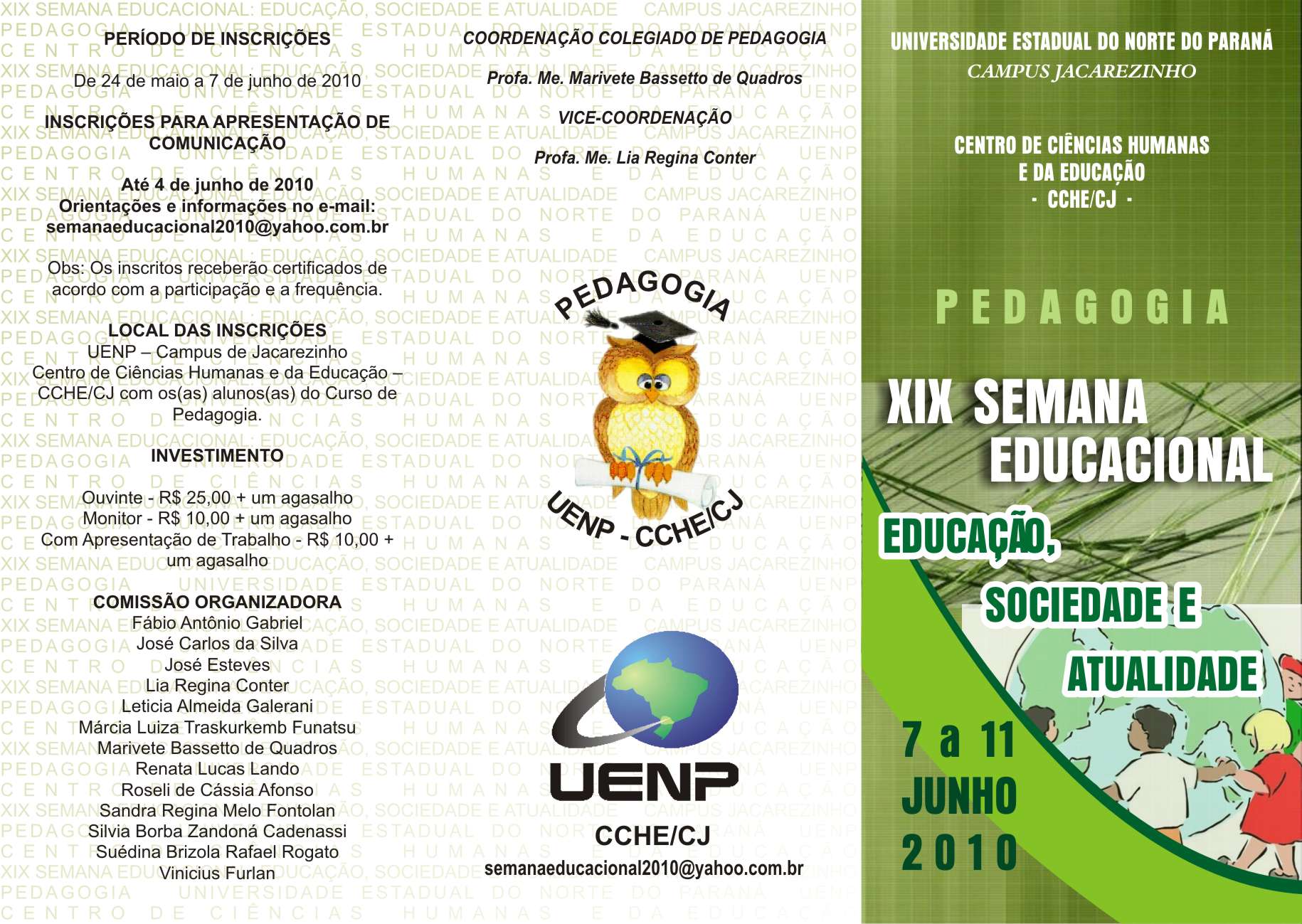 A 19ª edição da Semana Pedagógica (7 a 11 de junho) do Curso de Pedagogia sediada na UENP – Centro de Ciências Humanas e da Educação, campus Jacarezinho, traz como temática principal a – Educação, Sociedade e Atualidade – neste ano o evento direciona seus potenciais e talentos, propondo atividades diferenciadas porque compreende a relevância de eventos acadêmicos científicos, como um meio de proporcionar aos acadêmicos, aos professores e pesquisadores, um espaço para a divulgação de seus trabalhos de pesquisa, com a proposição de desenvolvimento do espírito científico.