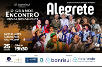 O município de Alegrete será o palco da próxima apresentação do espetáculo O Grande Encontro - Música dos Gaúchos, no dia 25 de abril, às 19h30, no Largo do Centro Cultural Adão Houayek. O evento gratuito irá reunir artistas consagrados da música regional, como Renato Borguetti, Os Fagundes, Wilson Paim, Shana Müller, César Oliveira e Rogério Melo, Daniel Torres, Mauro Moraes, entre outros.